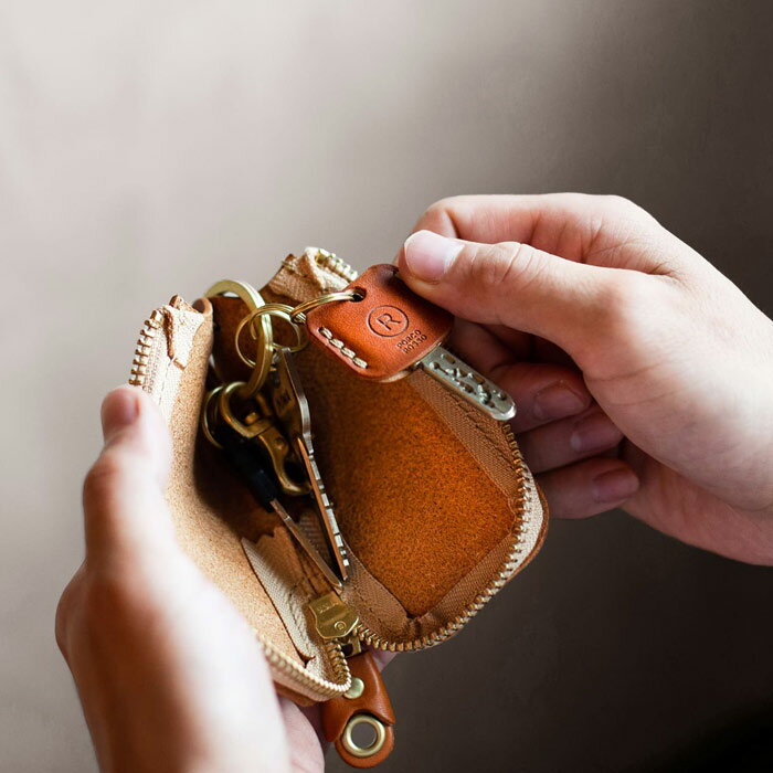 キーケース 革(スマートキーケース キーホルダー メンズ レディース ブランド)の解説 ●栃木レザーをつかったオリジナル商品 ポルコロッソオリジナルの栃木レザーで製作した、日本製、車の鍵が入るラウンドファスナーの4連キーケース。