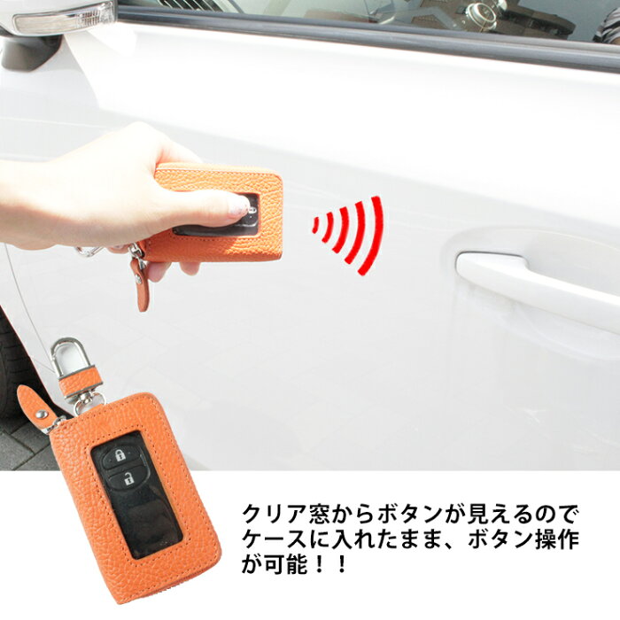 本革 発売開始から3年で30万個突破!スマートキーケース クリア窓付き(全24色)本格レザープレゼント包装無料!スマートキーカバー 箱入り プレゼント 大人気のマルチカラー スマートキーケースより透明窓のついたキーケースが発売! クリア窓からボタンが見えるので、スマートキーをケースに入れたまま操作が可能♪