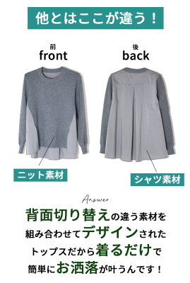 トップス ニット シャツ 異素材 長袖 グレー ブラック 灰 黒 タック デザイン Aライン ハイゲージ 秋冬 伸縮性 垢抜け バックデザイン ファッション レディース フリーサイズ Ehre style スタイル エーレスタイル【F210916】8/31再入荷