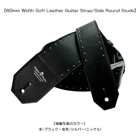モダンパイレーツ・ギターストラップ!!【60mm Width Soft Leather Guitar Strap/Side Round Studs】(60mm幅ソフトレザー・ギターストラップ/サイド・ラウンド・スタッズ)ギターストラップ・スタッズ・本革・スカル・ギター・ベース