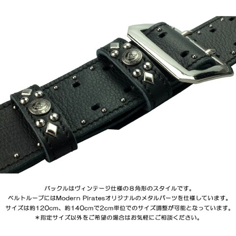 金具類は日本の職人の手がける細部までこだわったスカルドット・パーツ、最高品質のModern Piratesオリジナル製とUSA製スタッズを使用しています。