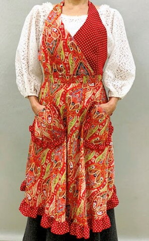 ワンピース エプロン レディース フリル ロング ドレス ハンドメイド 大人 可愛い おしゃれエプロン ロングエプロン ドレスエプロン 高級 花柄 エレガント 華やか かわいい プレゼント ギフト 誕生日 記念日 赤 モノトーン グリーン 水玉 ペイズリー ナジャハウス