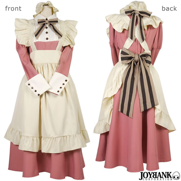 清楚なワンピースにたっぷりフリルのロングエプロンがレトロ可愛い!長袖カントリーロングメイド服コスチュームです♪