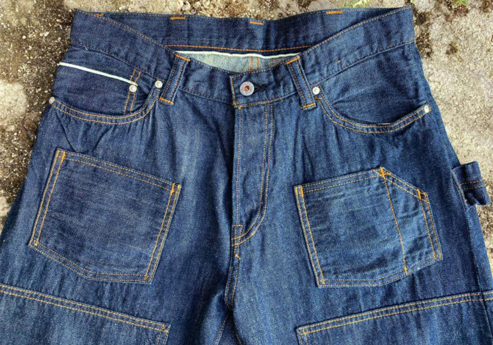 一般的なペインターパンツ等に用いられている太もも部分のポケットやハンマーループ、ツールポケットといったワークなディテールを詰め込んでいます。